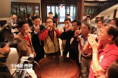 兩岸記者共品瀘州老窖原漿。(中國(guó)臺(tái)灣網(wǎng) 馬迪 攝)