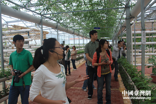 采訪團記者興致勃勃地走進現代農業展示館。(中國臺灣網 王君飛 攝)