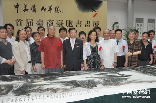中國臺灣網6月23日上海消息“我們要將這幅一丈二尺的山水國畫作品特別獻給‘中華情-兩岸緣’首屆臺商臺胞書畫展活動組組委會,這是我們海峽兩岸書畫家攜手合作的成果,也是兩岸書畫藝術交流的最新成果,我們一定要把它載入史冊!”