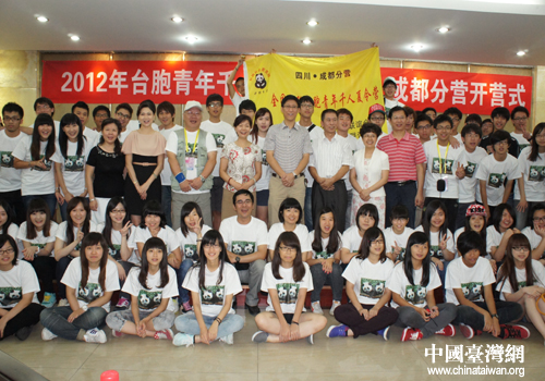 中國臺灣網7月8日成都消息 7月7日下午,由四川省臺聯和成都市臺聯聯合舉辦的全國臺聯2012年臺胞青年千人夏令營四川·成都分營在蓉開營,來自臺灣大學、臺灣輔仁大學、臺灣交通大學等36所高校的近70名臺灣大學生期盼已久的“熊貓故鄉”之行正式開啟。