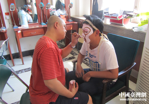 京劇院的師傅為臺灣學生花京劇臉譜。(北京通訊員 孫淼 攝)