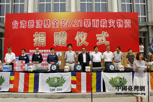 臺灣慈濟基金會7.21暴雨救災(zāi)物資捐贈儀式。(中國臺灣網(wǎng) 馬迪 攝)