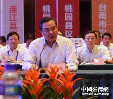8月19日,中共中央臺辦主任王毅在成都出席由兩岸基層民意代表共同參加的“雙百論壇”。(中國臺灣網 王怡然 攝)