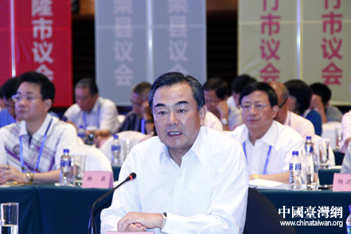 第三屆兩岸縣市“雙百論壇”19日上午在成都舉行論壇大會,中共中央臺辦主任王毅出席并致辭。(中國臺灣網 楊麗 攝)