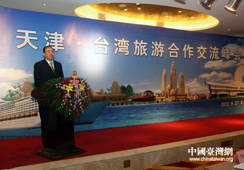 天津市旅游局局長佘清文在會上介紹了天津旅游業的基本情況、津臺旅游交流情況及天津旅游未來發展前景。他說,臺灣是天津游客十分向往的旅游目的地,自然風光秀美。近年來,天津與臺灣旅游合作交流越來密切,兩地旅游合作空間廣闊。希望通過此次峰會,讓臺灣旅游界人士更加深入的了解天津旅游的發展前景,進一步加強和推進津臺旅游交流合作,加深兩地聯系,共創雙贏。