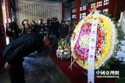 16日下午,臺(tái)灣海基會(huì)董事長林中森率海基會(huì)經(jīng)貿(mào)文化參訪團(tuán),赴北京香山碧云寺拜謁孫中山衣冠冢。(中國臺(tái)灣網(wǎng) 陳佳慧 攝)