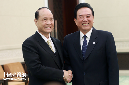 16日晚,海協(xié)會(huì)會(huì)長(zhǎng)陳云林(右)會(huì)見(jiàn)了首次來(lái)大陸的臺(tái)灣海基會(huì)新任董事長(zhǎng)林中森一行。(中國(guó)臺(tái)灣網(wǎng) 陳佳慧 攝)