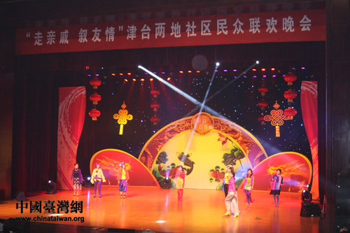 23日晚在天津中華劇院舉行了“走親戚 敘友情”津臺兩地社區(qū)民眾聯(lián)歡晚會,兩岸同胞為大家獻上了豐富多彩的文藝表演。在熟悉的旋律下,大家同唱一首歌,掀起一個又一個高潮。兩岸同胞心情激動,深刻體會到了兩岸民眾越走越親的深厚情誼。(中國臺灣網(wǎng)記者 郭瑩瑩)