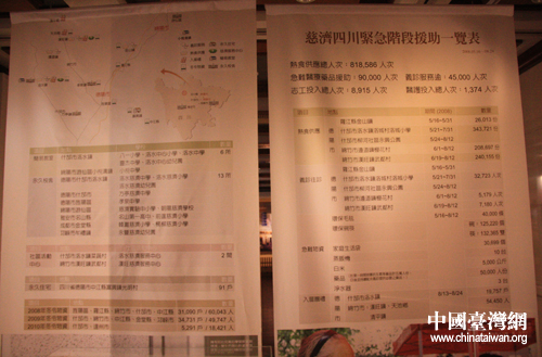 慈濟(jì)四川緊急階段援助一覽表(中國臺灣網(wǎng) 王文英 攝)
