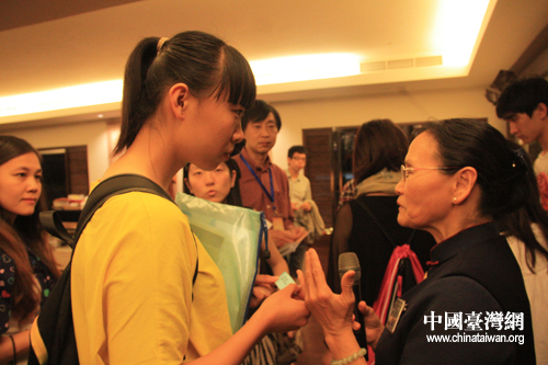 慈濟(jì)基金會方金香為大陸青年大學(xué)生解釋靜思語的含義副本(中國臺灣網(wǎng) 王文英 攝)