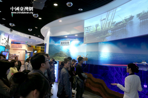 28日,來自中國人民大學、北京理工大學、北京大學、清華大學、北京中醫大學等高校的三十多名在京臺生組成的“在京臺生企業參訪團”參觀了中國海洋石油總公司展覽館。(中國臺灣網 普燕 攝)