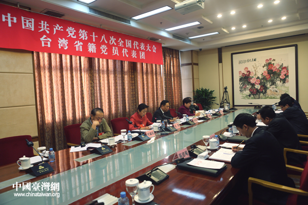 8日下午,黨的十八大臺灣省籍代表團在駐地舉行會議,討論黨的十八大報告。代表們紛紛從兩岸關系和平發展大局出發,結合自身工作實際踴躍發言。(中國臺灣網 王偉 攝)