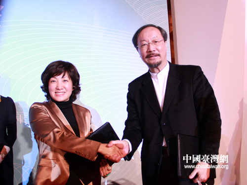 洽談會上,“兩岸文化創意人才服務基地”與“臺灣文化創意產業聯盟”簽署了戰略合作意向書。(中國臺灣網 楊麗 攝)