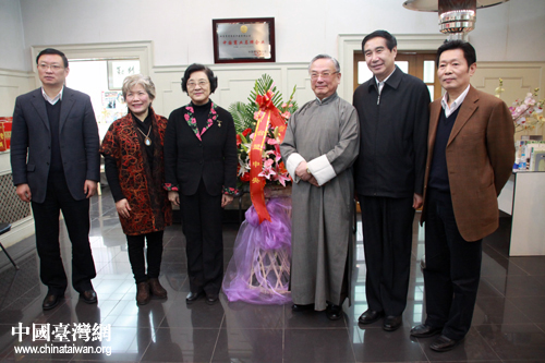 全國政協副主席、臺盟中央主席林文漪,臺盟中央副主席黃志賢,秘書長張寧,“育青食品”董事長黃梅邨等合影。(中國臺灣網 王怡然 攝)