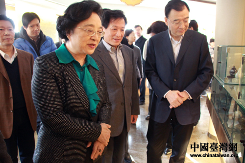 全國政協副主席、臺盟中央主席林文漪等參觀欣賞天福茶文化館內的精美茶具。(中國臺灣網 王怡然 攝)