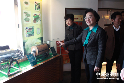 林文漪等參觀天福茶文化館內的茶葉生產加工模型。(中國臺灣網 王怡然 攝)