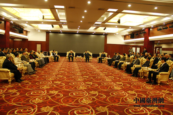 4月10日下午,河南省政協主席葉冬松在鄭州會見了參加癸巳年黃帝故里拜祖大典的臺灣統派人士和退役將領參訪團。(中國臺灣網 李丹 攝)