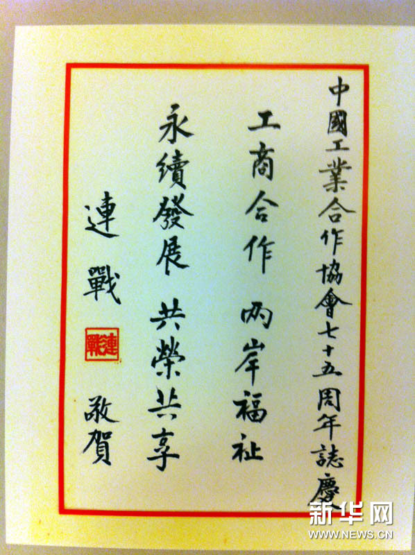 9月14日,中國工業合作協會在北京舉行成立75周年大會。國民黨榮譽主席為此專門發來賀電和題詞。新華社記者李保東攝
