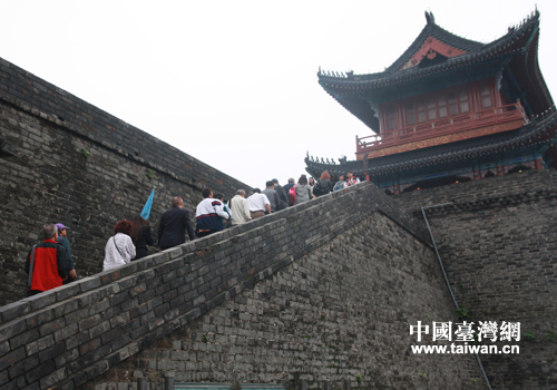 兩岸新媒體荊楚行采訪團來到古城墻內(nèi)。(中國臺灣網(wǎng) 段雯婷 攝)