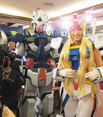婚宴進行到一半時,燈光突然暗下,投影屏幕出現“黑武士”的臉孔,新郎變身2米高的“鋼彈”出場,和“黑武士”用光劍PK,在體力漸漸耗盡時,新娘化身“鋼彈娘”到場支援,終于將黑武士擊退,上演一出夫妻“并肩作戰”的好戲。