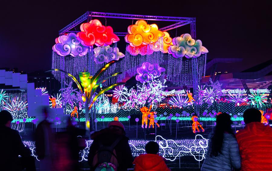 2月19日,游客在臺(tái)北元宵燈會(huì)上觀賞花燈。元宵節(jié)將至,以“福祿猴”為主題燈的臺(tái)北元宵燈會(huì)亮燈,千姿百態(tài)、情趣盎然的花燈吸引了眾多市民和游客前來(lái)觀賞。 新華社記者 張國(guó)俊 攝
