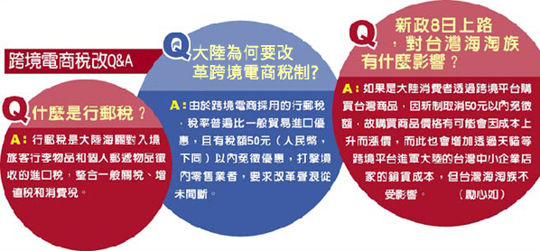對于跨境電商新稅制,勤業(yè)眾信執(zhí)行副總經(jīng)理陳文孝表示,雖然平均成本提高,但正面來看,要采取新規(guī)定的零售進口稅率,需經(jīng)由海關(guān)聯(lián)網(wǎng)或由大陸快遞業(yè)者、郵政公司,提供物流、現(xiàn)金流、交易流三個單據(jù)的電子訊息,這可解決臺灣許多走電商管道的企業(yè)帳目較混亂問題,有助后續(xù)上市IPO。