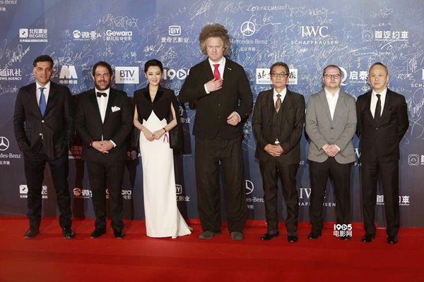 本屆北影節(jié)“天壇獎”評委亮相紅毯,右一為香港導(dǎo)演陳德森。