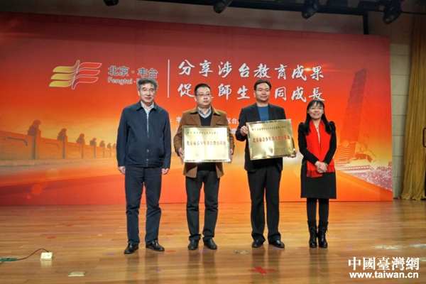 中國臺灣網11月22日北京訊 (記者 韓靜) 11月22上午,北京市豐臺區涉臺教育工作總結會在北京第十八中學舉行,會上對豐臺區東鐵營一中等幾所學校進行了涉臺基地校的授牌儀式。