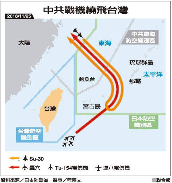 日本防衛(wèi)省統(tǒng)合幕僚監(jiān)部則說,11月25日上午,中國轟-6轟炸機和情報收集機等四架軍機在太平洋朝西北飛行并飛越宮古海峽,然后飛往東海方向。