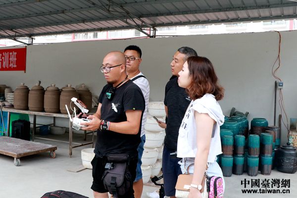 臺灣著名航拍師張順杰在牙舟古陶器燒制技藝傳承基地進行航拍。(中國臺灣網 張亞靜 攝)