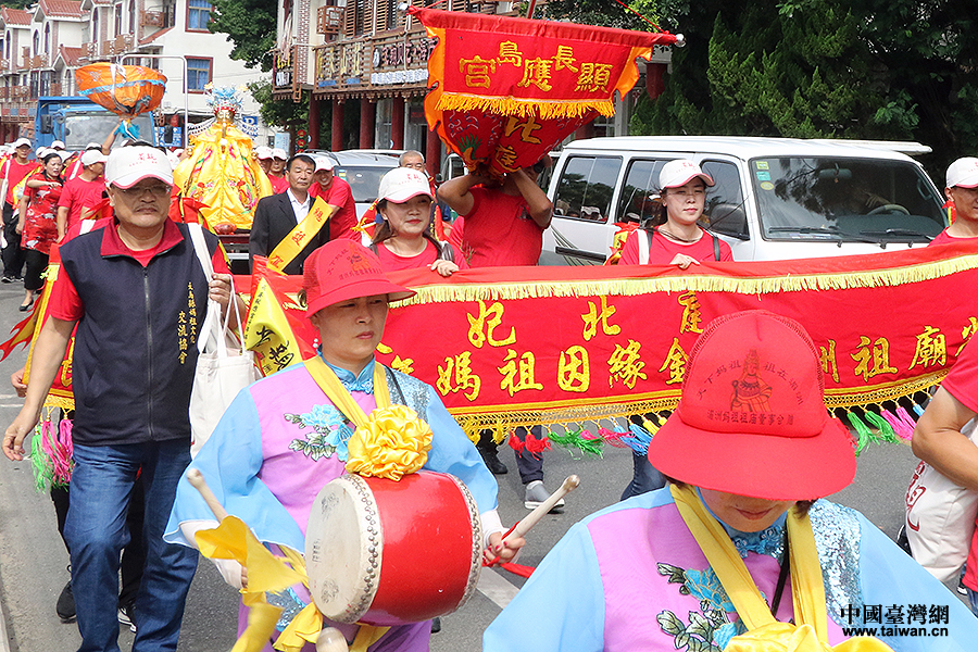 長島顯應宮媽祖金身在湄洲島進行踩街儀式。(中國臺灣網 何建峰 攝)