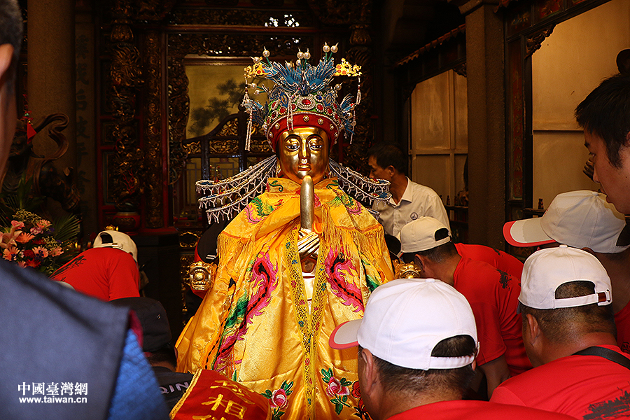 長島顯應宮媽祖金身駐蹕在湄洲媽祖祖廟天后宮寢殿。(中國臺灣網 何建峰 攝)