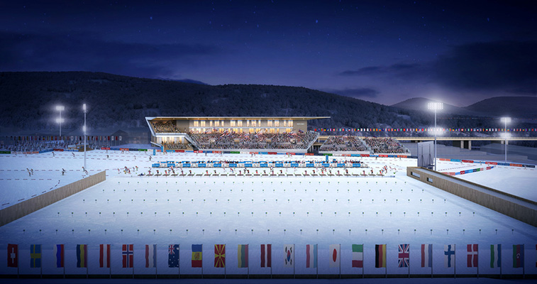 冬季兩項中心效果圖(賽道已完工)。(圖片來源:北京冬奧組委官網)