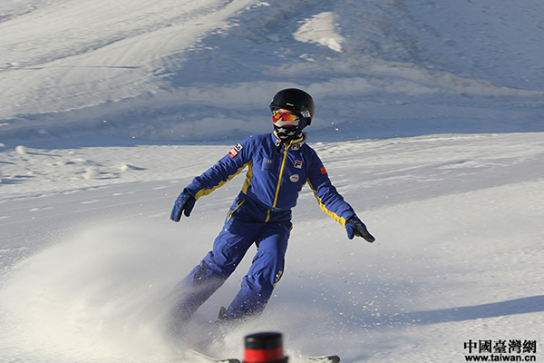 云頂滑雪學校學生正在進行空中技巧訓練。(中國臺灣網 賈若瀾 攝)