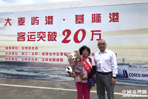 中國臺灣網5月25日玉環訊(記者 普燕) 5月25日下午,浙江省玉環市大麥嶼港旅客大廳人頭攢動,熱鬧非凡。玉環市領導和400多名兩岸旅客,共同見證和慶祝大麥嶼港對臺海上直航突破20萬人次這一具有歷史意義時刻的誕生。來自臺中的劉細妹成為第20萬人次幸運旅客。