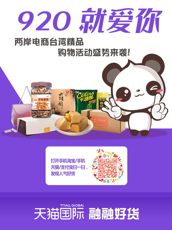 請掃描海報下方二維碼進入購物頁面,“920就愛你”,兩岸電商臺灣精品購物節等你來狂歡。