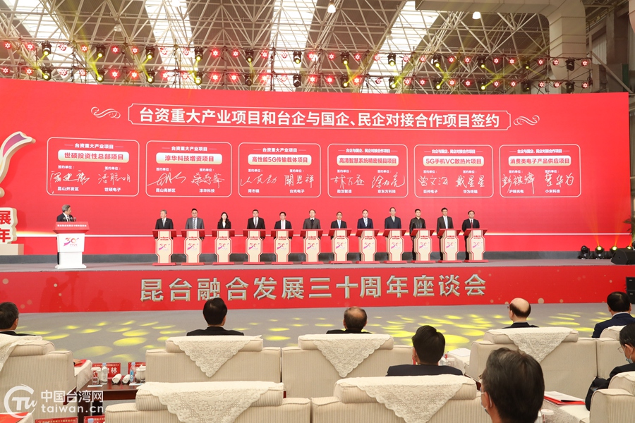 現(xiàn)場舉行了昆山臺商發(fā)展基金和昆山臺協(xié)發(fā)展會館揭牌儀式,并發(fā)布了昆山市落實臺胞臺企同等待遇情況報告、臺資企業(yè)發(fā)展信心報告以及《昆山市進(jìn)一步深化昆臺經(jīng)濟(jì)社會文化交流合作的若干措施》。活動中,臺資重大項目、臺企與民企、國企對接合作,臺企與高校、科研院所合作、金融項目,以及兩岸青創(chuàng)項目、昆臺交流合作項目等分三批進(jìn)行了集中簽約。