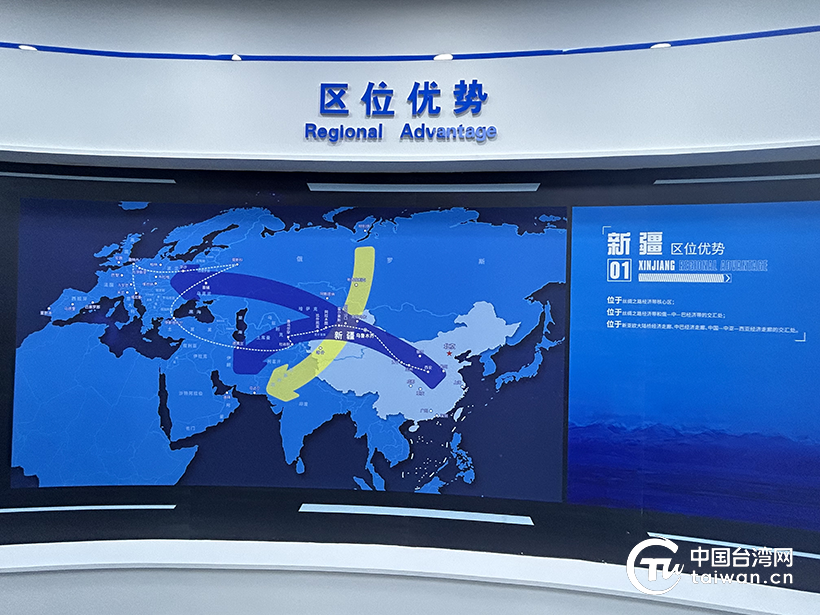 克拉瑪依云計算產業園區里展示的克拉瑪依區位優勢。(中國臺灣網 常卓然 攝)