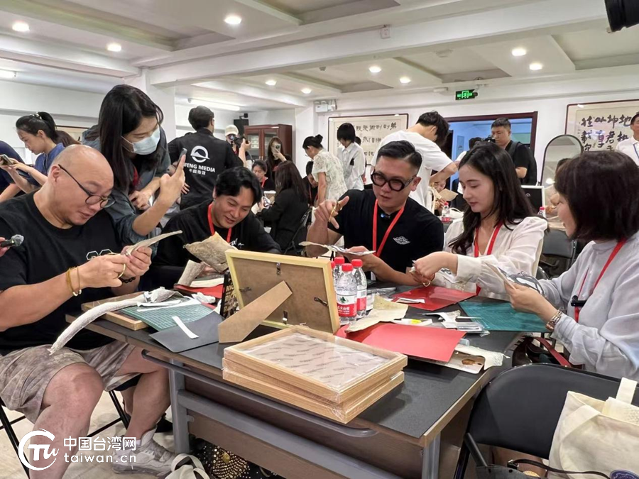 兩岸媒體人在黑龍江省民族博物館內體驗魚皮畫創作。(中國臺灣網記者 劉琳 攝)