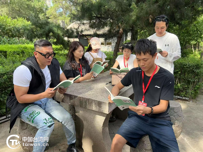 臺灣青年媒體人在蕭紅故居的花園中共同誦讀。(中國臺灣網記者 劉琳 攝)