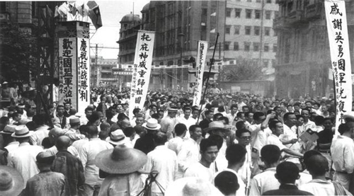 1945年10月25日,中國戰(zhàn)區(qū)臺(tái)灣省受降儀式在臺(tái)北舉行,日本駐臺(tái)總督安藤利吉在臺(tái)北公會(huì)堂內(nèi)向中國臺(tái)灣省行政長(zhǎng)官陳儀呈交降書、繳械投降,臺(tái)灣、澎湖列島重歸中國主權(quán)管轄,再也不是日本殖民地。“臺(tái)北40余萬市民……老幼俱易新裝,家家遍懸彩燈,相逢道賀,如迎新歲,鞭炮鑼鼓之聲,響徹云霄,獅龍遍舞于全市,途為之塞。”“家家戶戶,無比歡欣,祭祖謝神,向先民冥中告知臺(tái)灣已回歸祖國。”10月25日這一天,也在1946年被確定為“光復(fù)節(jié)”,成為臺(tái)灣民眾舉家歡慶的歡樂節(jié)日。