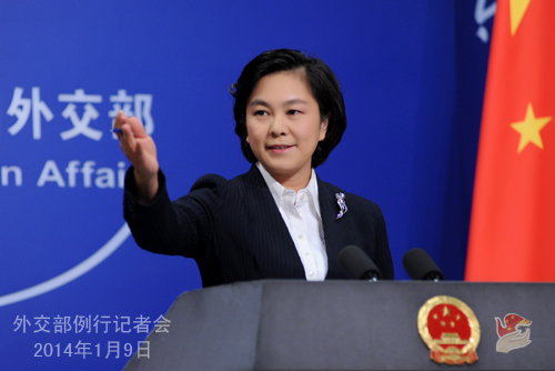 2014年1月9日,外交部發言人華春瑩主持例行記者會。