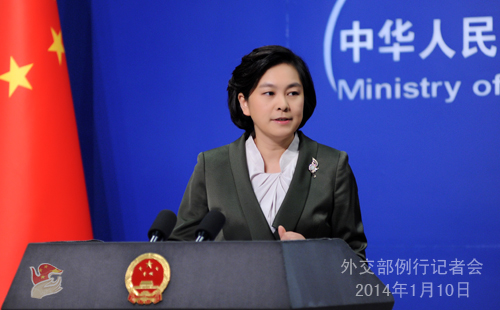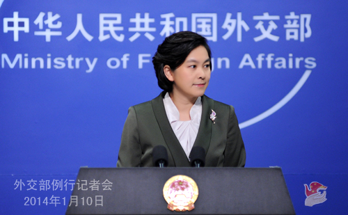 2014年1月10日,外交部發言人華春瑩主持例行記者會。
