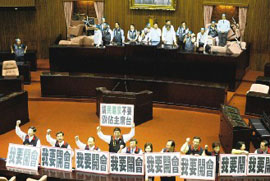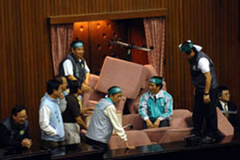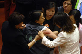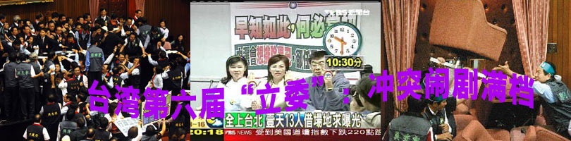 臺灣“立法院”打群架早就聞名全世界,一般上不了國際新聞。這一次干架的規(guī)模特別大,連“院長”王金平也掛了彩。幾位民進黨女“立委”以鞋子做暗器,砸中王金平的嘴角。另外有王幸男、蔡啟芳等民進黨“立委”以摩托車大鎖鎖住議場......《詳細》 | | |