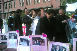 臺灣地區(qū)第6屆“立委”在2007年12月21日臺“立法院”第6會期停會的這一天“畢業(yè)了”,“立委”們穿著學(xué)士服、頭戴學(xué)士帽在議場的中庭拍起畢業(yè)照,臺“立法院長”王金平還親自為每位“立委”撥穗,顯得有點離情依依。“立委”侯水盛說,感覺真的輕松多了,因為當(dāng)“立委”的生活質(zhì)量很差,但也有所收獲,總之畢業(yè)后就放空了......《詳細》 |