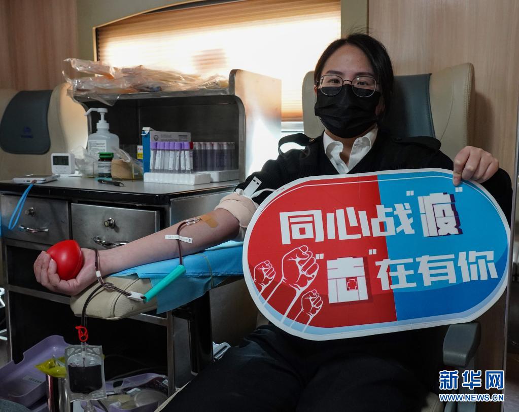 2020年3月5日,杭州海關青年關員在獻血車上獻血。新華社發(趙凡瑜 攝)