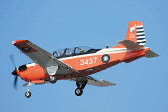 空軍官校這架編號(hào)3437的T-34C教練機(jī)昨天下午在高雄縣那瑪夏鄉(xiāng)失蹤。圖片來源:臺(tái)灣《聯(lián)合報(bào)》