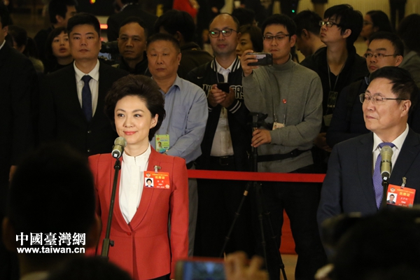 海霞委員回答記者提問。(中國臺灣網 雍紫薇 攝)