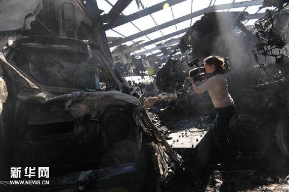 當天下午,利比亞官方首次組織外國記者到一處被聯(lián)軍摧毀的海軍設(shè)施參觀。遭轟炸的設(shè)施是位于的黎波里北部的海軍軍港內(nèi)的一個維修和培訓(xùn)廠房,與對面的居民密集區(qū)僅一街之隔。據(jù)守衛(wèi)這里的士兵介紹,當?shù)貢r間21日晚9時30分,該廠房總共遭到來自地中海上美國軍艦發(fā)射的7枚導(dǎo)彈襲擊,整個廠房被完全摧毀,所幸未造成人員傷亡。 新華社記者 楊光 攝