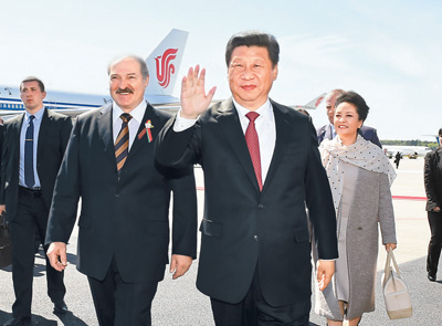 5月10日,國家主席習近平抵達白俄羅斯首都明斯克,開始對白俄羅斯進行國事訪問。白俄羅斯總統盧卡申科偕白俄羅斯政府高級官員到機場迎接習近平和夫人彭麗媛。